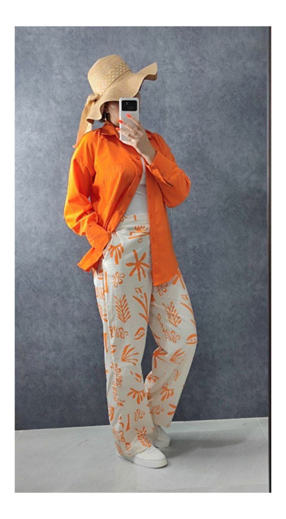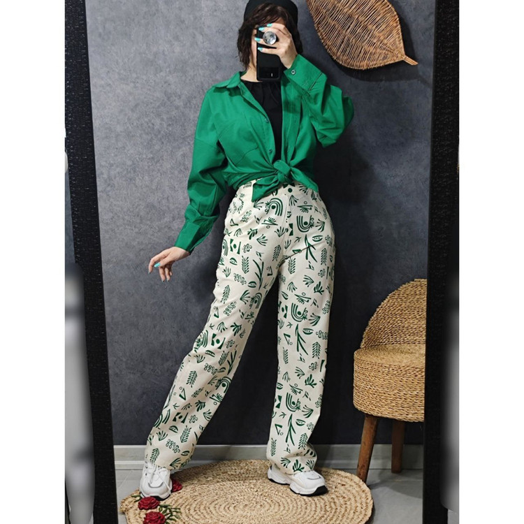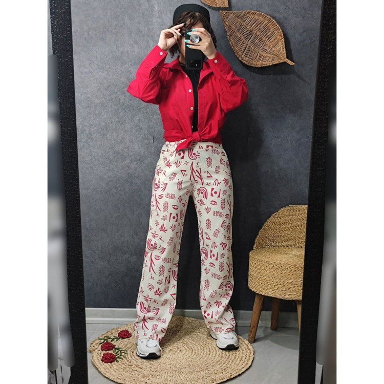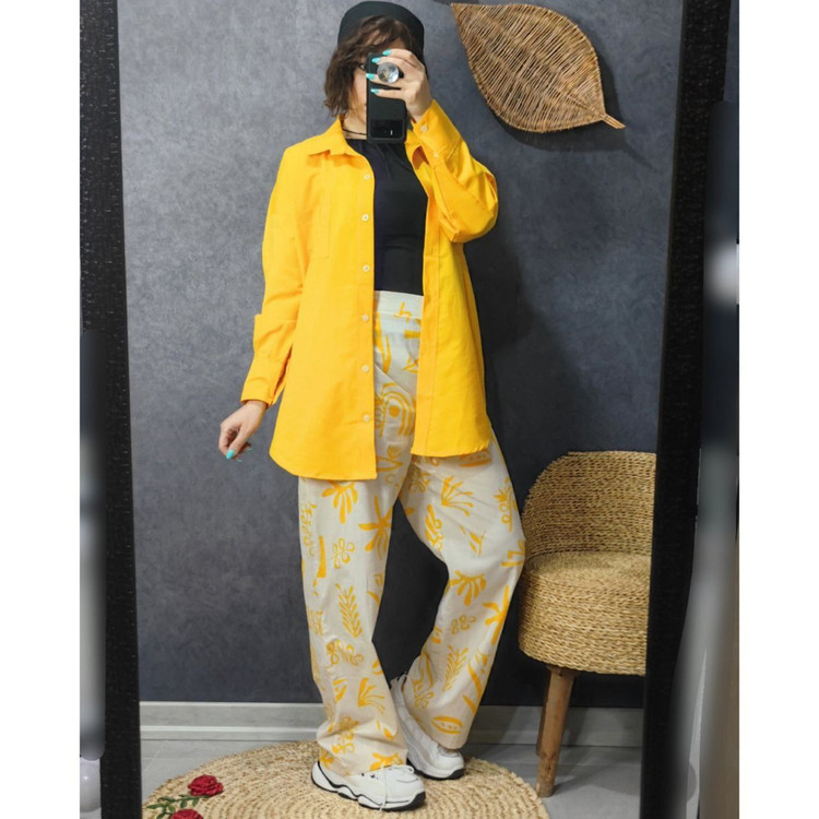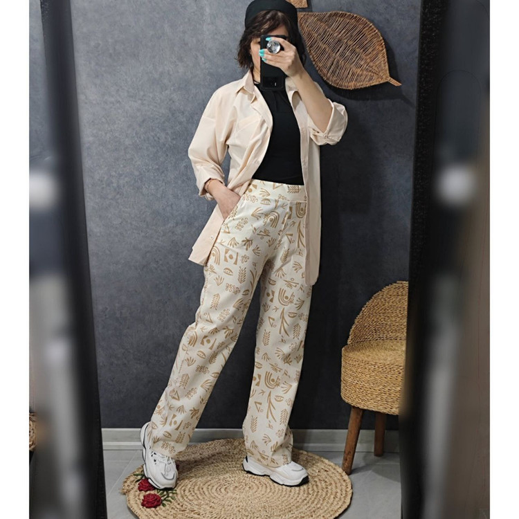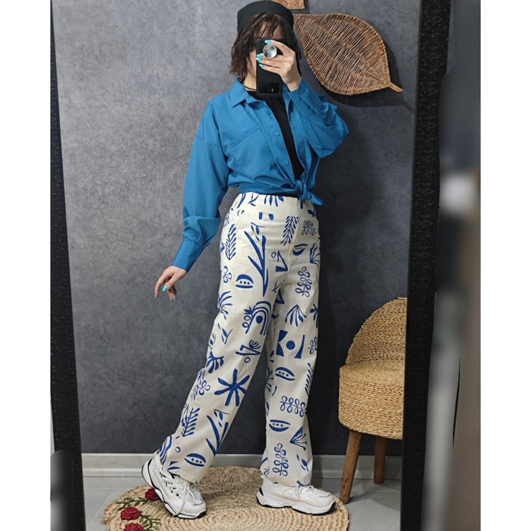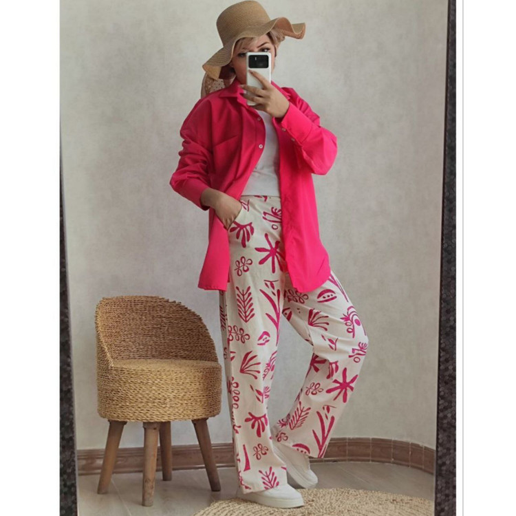 ست شومیز داکرون و شلوار لنین چاپی زنانه