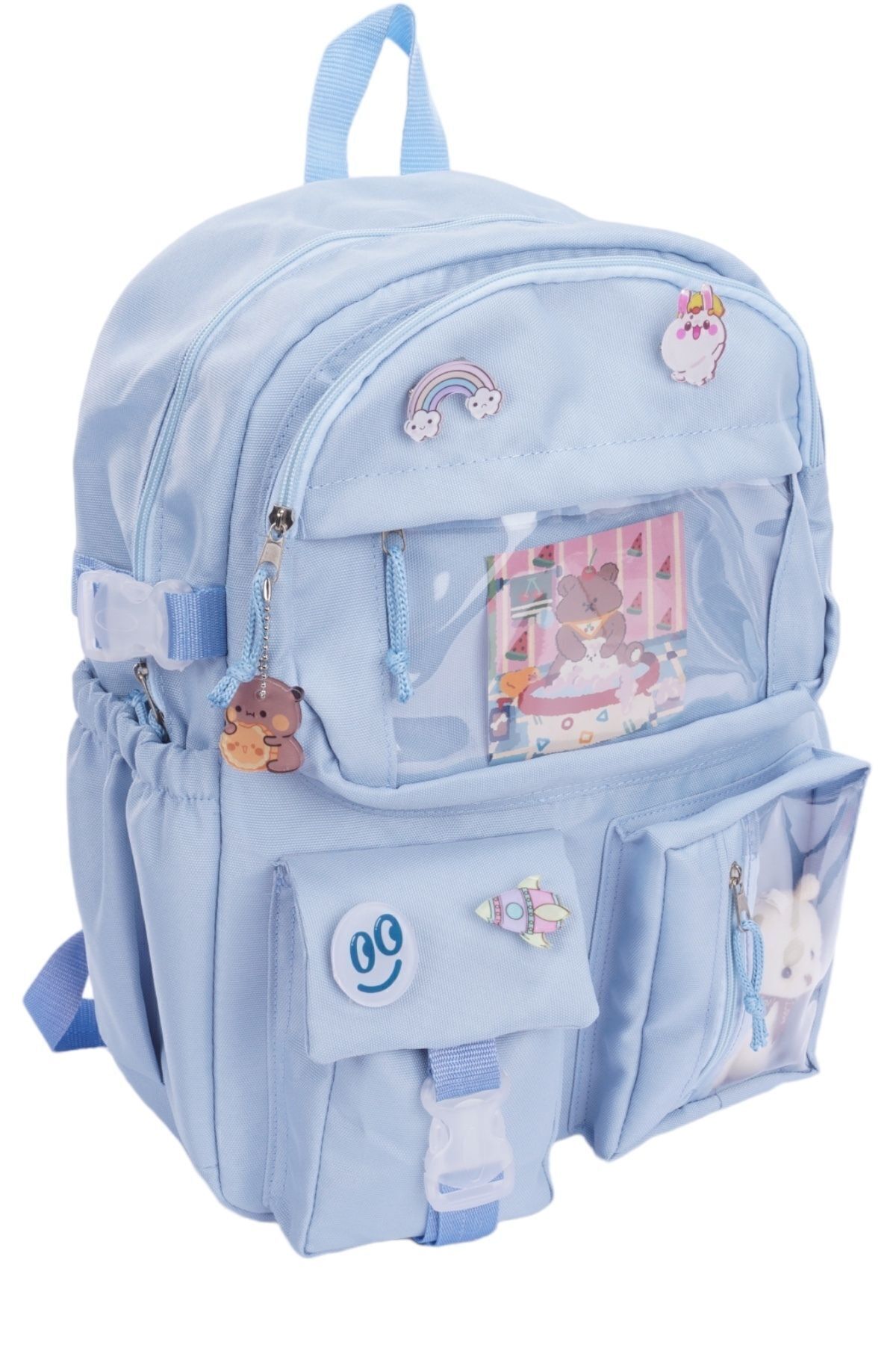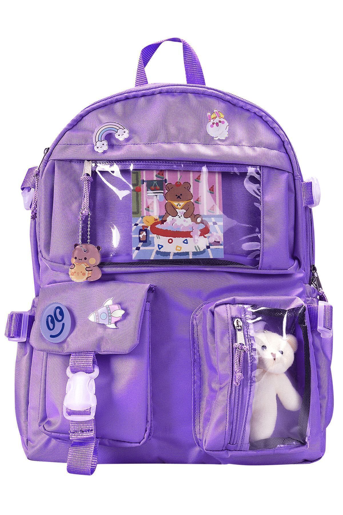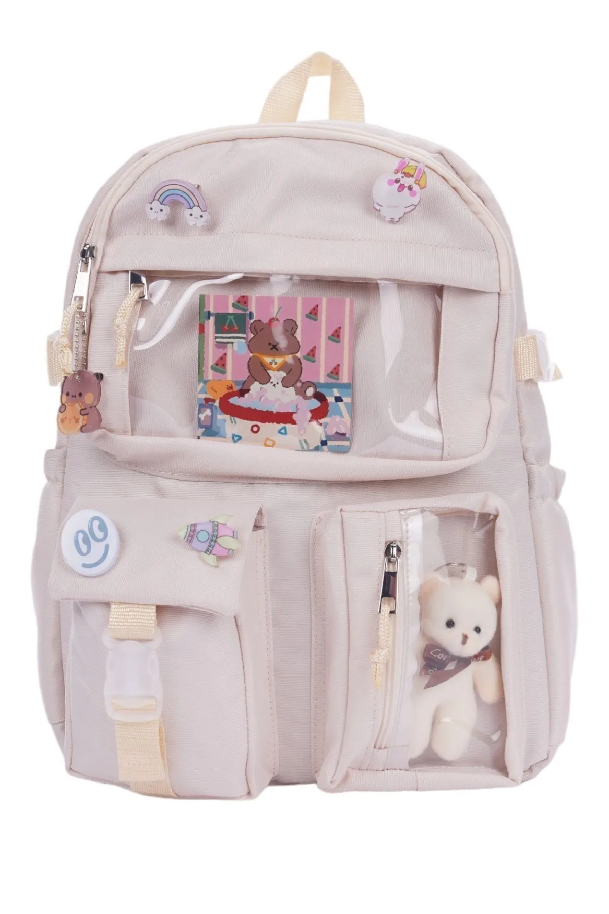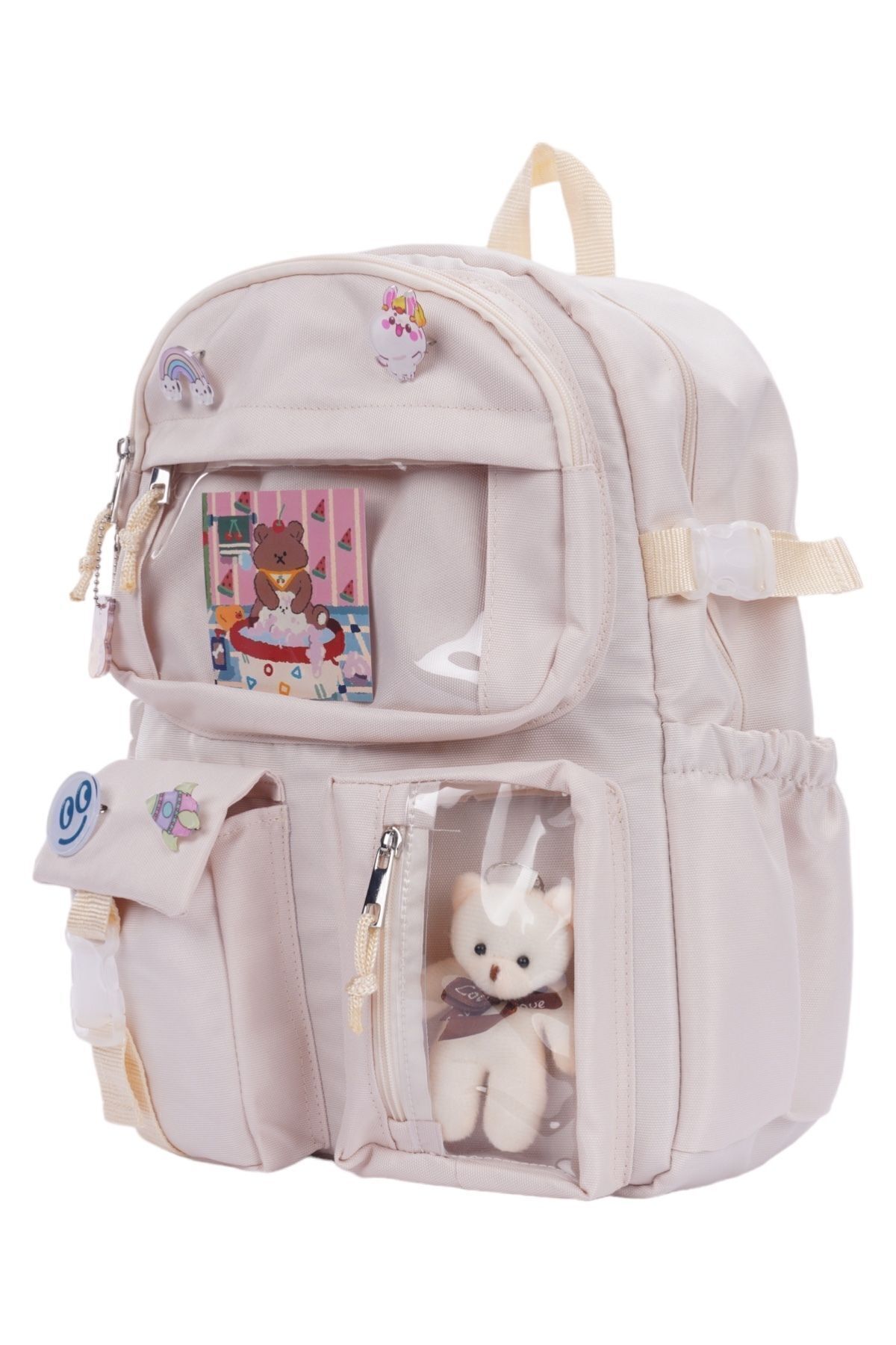 کوله پشتی مدرسه ای سبک کره ای Roomys Kawaii با لوازم جانبی و خرس عروسکی