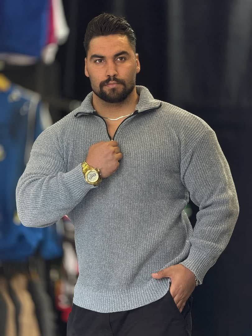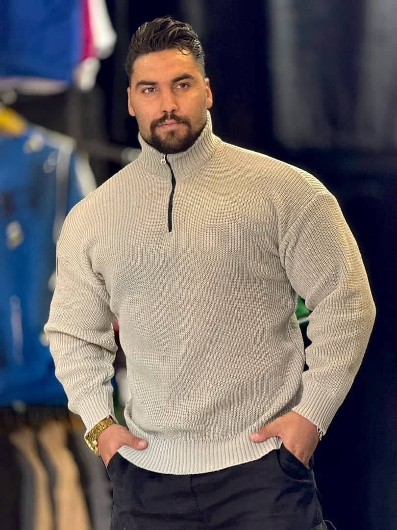 یقه دار نیم زیپ فندوقی