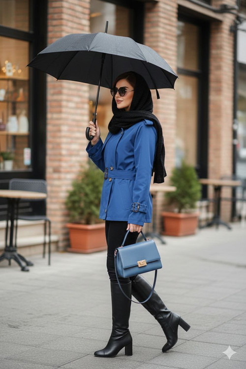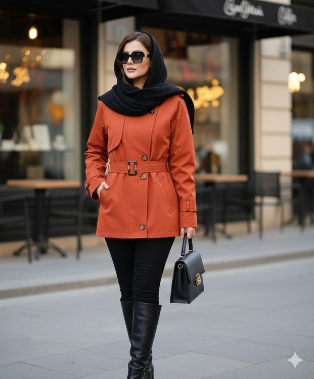 ترنچ کت کوتاه آستردار با طراحی تمیز و جزئیات فوقالعاده جذاب؛ مناسب استایل روزمره و رسمی 🍂💃