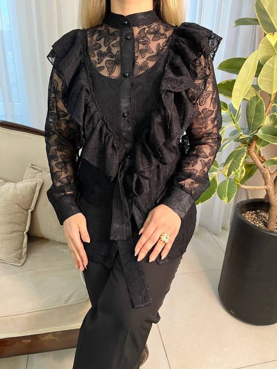 دقت بفرمایید شومیز بدون استر هست و مدل زیر شومیز تاپ مشکی پوشیدن
